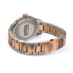 Корпус состоит из трех эквивалентных частей: ободка, корпусного кольца, крышки корпуса. Сочетание сатинирования с отделкой пескоструйкой по последним технологиям, округлых линий и матовых поверхностей – все это передает элегантность военного самолета Douglas Dakota. А изогнутые лапки корпуса – образец элегантности прошлых лет – будут гарантированно хорошо лежать по руке любого размера.