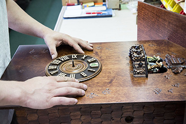 Многолетний опыт ручного производства позволяет не только использовать точные часовые механизмы, но и предлагать покупателю эксклюзивную резьбу по дереву, украшающую корпус. Даже сегодня часы Hönes - это особые ювелирные изделия, отвечающие самым высоким требованиям к эстетике дизайна и качества.