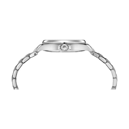Корпус: Нержавеющая сталь. Белый перламутровый циферблат, декорирован 3 бриллиантами. Стрелки и часовые индексы золотистого цвета. Сапфировое стекло. Диаметр 34 мм. Водозащита 200 м.