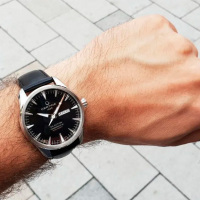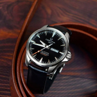 Корпус: Нержавеющая сталь. Чёрный циферблат. Стрелки и часовые индексы серебристого цвета, покрыты люминесцентным составом. Антибликовое покрытие сапфирового стекла позволяет циферблату быть хорошо читаемым и видимым даже в самые солнечные дни. Диаметр 41 мм. Водозащита 200 м.