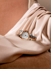 Корпус: Корпус из нержавеющей стали с PVD покрытием. Сапфировое стекло с антибликовым покрытием. Серебристый циферблат, позолоченные стрелки и часовые индексы. Вращающийся безель. Диаметр 29 мм. Водонепроницаемость 200 метров.