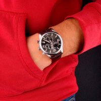 Корпус: Корпус из нержавеющей полированной/матовой стали. Коричневый циферблат с золотистыми стрелками и рисками. Люминесцентное покрытие индексов, часовой и минутной стрелок. Сапфировое стекло с антибликовым покрытием. Диаметр 42 мм. Водостойкость 100 м.