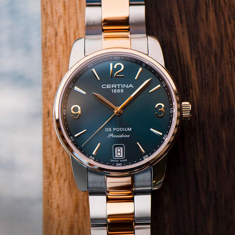 Корпус: Корпус из полированной/матовой нержавеющей стали с PVD - покрытием золотом. Зеленый циферблат с золотистыми стрелками и часовыми индексами. Сапфировое стекло. Диаметр 33 мм. Водостойкость 100 м. Система DS.