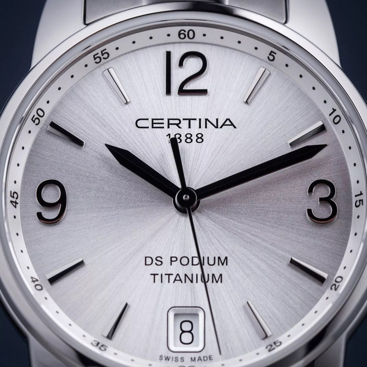 Корпус: Корпус выполнен из титана, который имеет высокую прочность и устойчивость к коррозии. Циферблат серебристого цвета выполнен в технике sunray, создающей эффект переливающихся лучей. Часовые индексы и стрелки выполнены из стали. Сапфировое стекло с антибликовым покрытием, устойчивое к повреждениям и обеспечивающее чёткую видимость при любом освещении. Диаметр корпуса составляет 33 мм. Водонепроницаемость WR 100 (плавание).