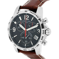 Функции: Центральные часовая и минутная стрелки, маленькая секундная стрелка на «6 часов». Апертура даты на «4 часа». Хронограф: центральная секундная стрелка, 30-минутный и 1/10-секундный индикаторы на «9» и «3 часах» соответственно. Тахиметр.