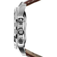 Корпус: Корпус выполнен из высококачественной стали с повышенной устойчивостью к коррозии. Чёрный циферблат. Серебристые полированные стрелки и часовые индексы с покрытием Superluminova. Крупная индикация времени позволяет считывать показания с циферблата в любой ситуации. Сапфировое стекло с односторонним антибликовым покрытием устойчивое к появлению царапин, обладающее высокой прозрачностью. Диаметр: 41 мм. Водозащита: 100 м.