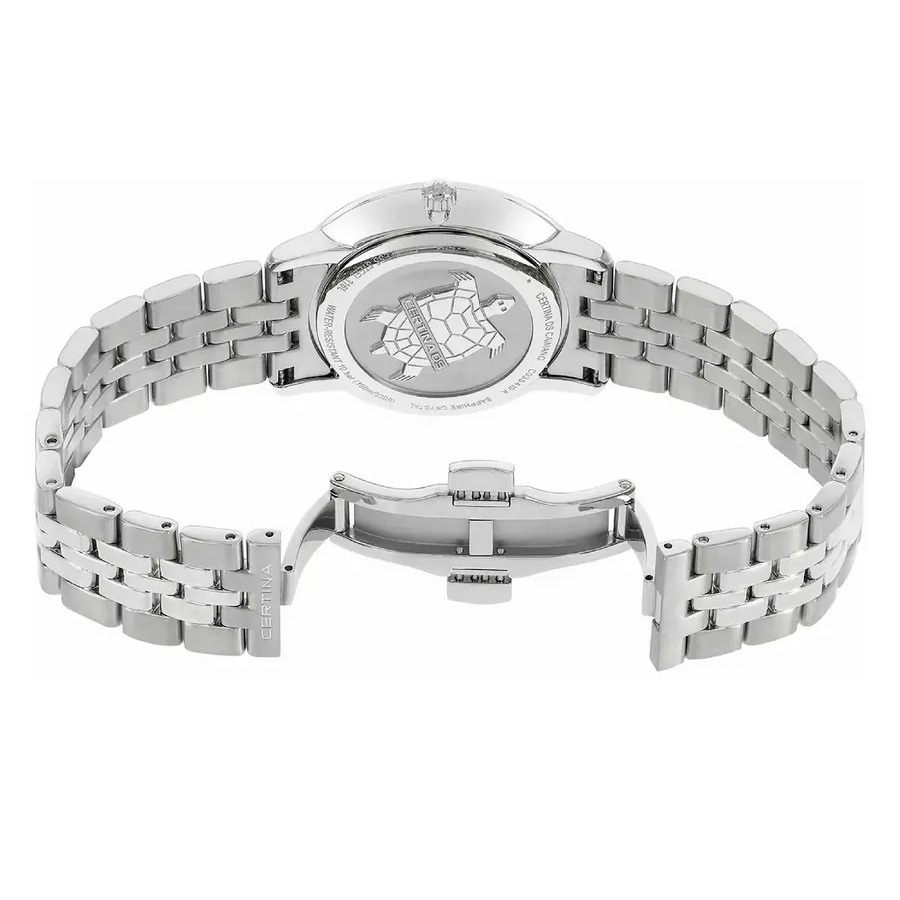 Корпус: Корпус из нержавеющей полированной/матовой стали. Чёрный циферблат. Стрелки и часовые индексы серебристого цвета с люминесцентным покрытием. Сапфировое стекло. Диаметр 39 мм. Водостойкость 100 м. Система DS.