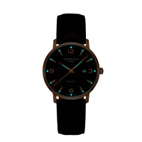 Корпус: Корпус из полированной/матовой нержавеющей стали с PVD - покрытием золотом. Серый циферблат с золотистыми стрелками и часовыми индексами. Часовая и минутная стрелки с люминесцентным покрытием. Сапфировое стекло. Диаметр 39 мм. Водостойкость 100 м. Система DS.