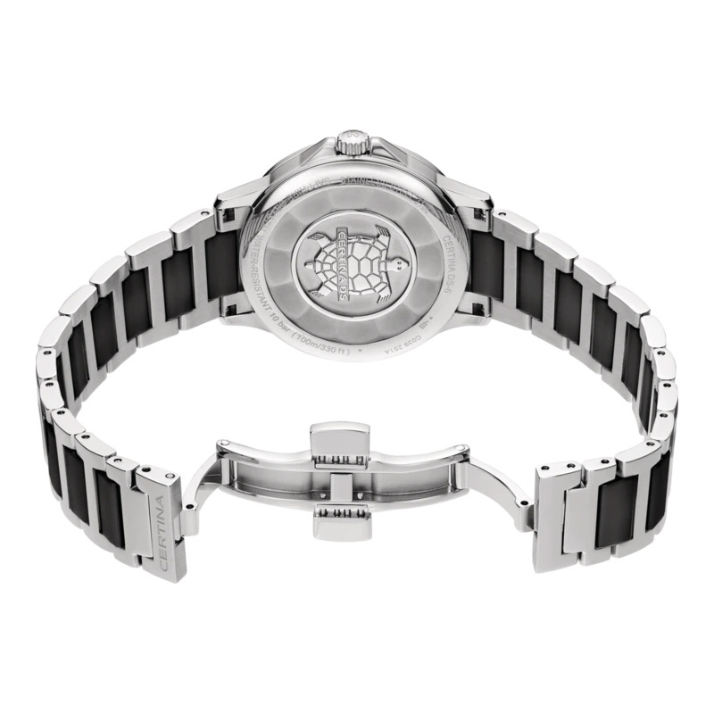 Ремешок: Браслет стальной с керамическими вставками чёрного цвета и раскладывающейся застежкой.