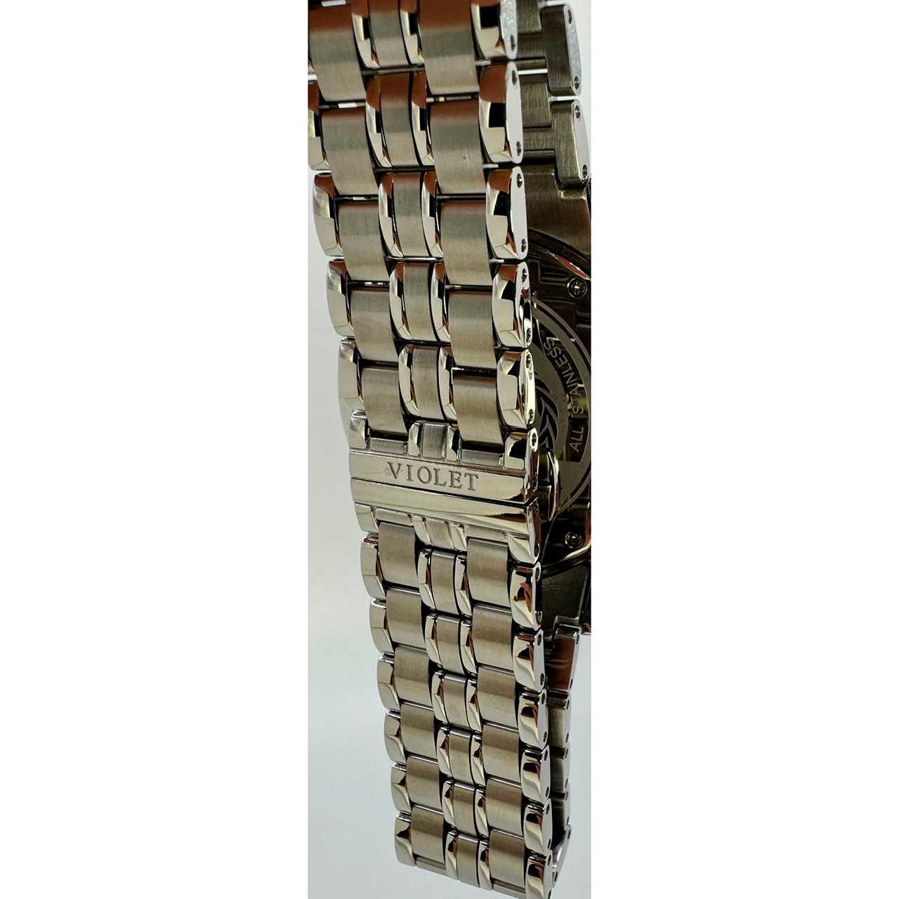 Ремешок: Браслет выполнен из высококачественной стали с повышенной устойчивостью к коррозии, поверхность с матовой шлифовкой – сатинированием и полировкой до зеркального блеска. Раскладывающаяся застежка с кнопочной фиксацией.