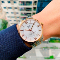 Корпус: Корпус выполнен из нержавеющей стали 316L с частичным PVD -покрытием, поверхности с матовой шлифовкой – сатинированием и полировкой до зеркального блеска. Лаконичный серебристый циферблат с золотистыми часовыми метками и стрелками. Накладные метки в виде римских цифр и штрихов. Заостренные прямоугольные стрелки в стиле Baton. Сапфировое стекло выпуклое с антибликовым покрытием, защищает циферблат от царапин и повреждений. Рифленая заводная головка. Прозрачная задняя крышка корпуса. Диаметр корпуса составляет 42 мм. Водозащита 50 м.