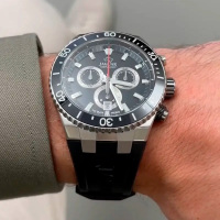 Корпус: Часы изготовлены из нержавеющей стали 316L, поверхности с матовой шлифовкой сатинированием и глянцевой полировкой. Этот тип стали, благодаря своему составу, особенно устойчив к коррозии, отличается высокой прочностью и устойчивостью к царапинам. Кроме того, благодаря добавлению керамики чёрного цвета в безель часы будут практически устойчивы к царапинам и будут иметь меньший вес. Этот материал придает часам очень элегантную и техничную отделку. Циферблат чёрного цвета, стальные часовые индексы и стрелки с люминесцентным покрытием Super-LumiNova, обеспечивают идеальную читаемость. Сапфировое стекло с антибликовым покрытием, предотвращающее появление неприятных отражений, которые мешают правильному считыванию циферблата при определенных условиях освещения. Диаметр: 44,8 мм. Водонепроницаемость: 100 м.