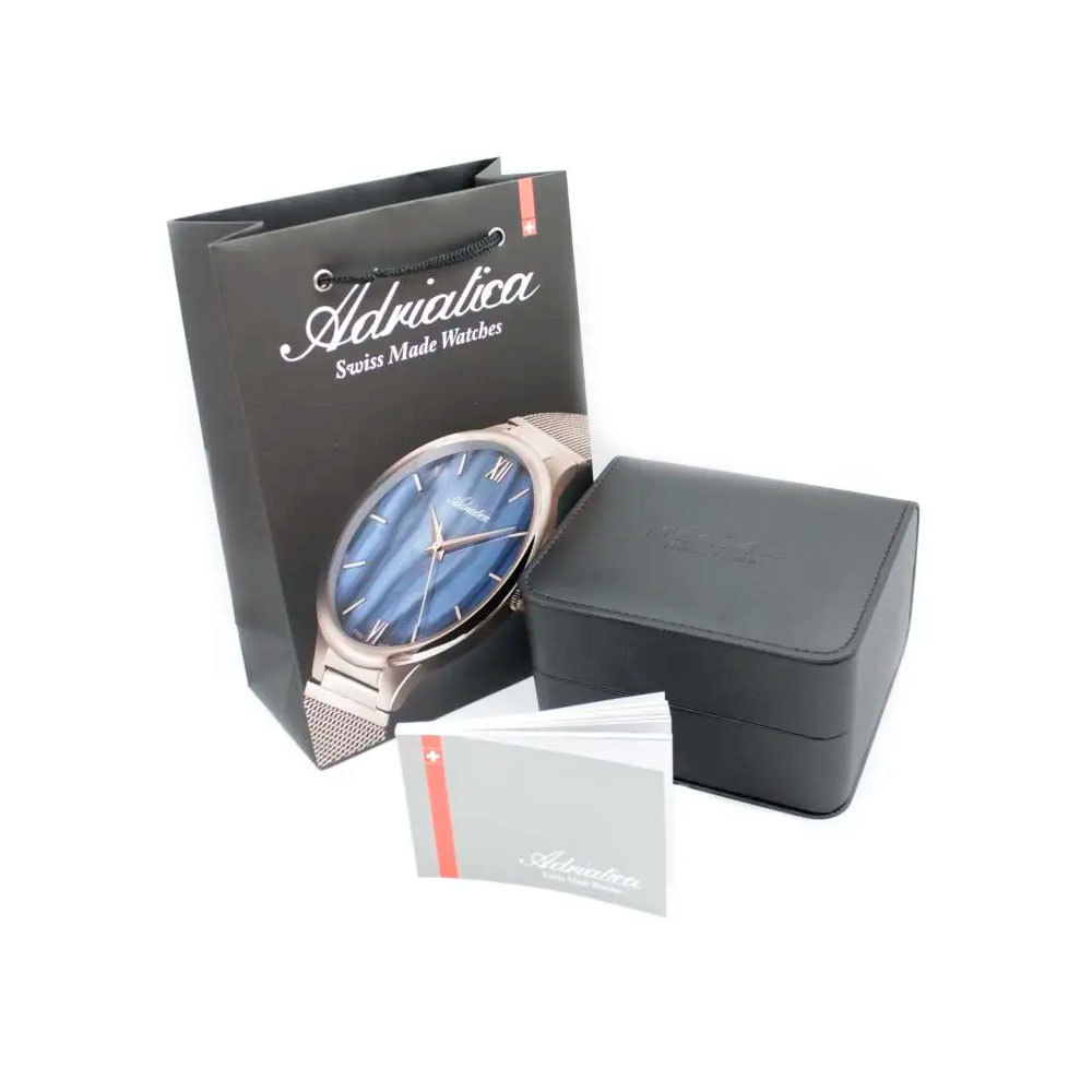 Корпус: Круглый корпус выполнен из полированной нержавеющей стали. Синий циферблат с узором гильоше. Накладные часовые индексы выполненый из стали. Стрелки с покрытием SuperLuminova, которое обеспечивает длительную подсветку в темное время суток. Устойчивое к возникновению царапин сапфировое стекло. Диаметр корпуса составляет 40 мм, толщина 7 мм. Водостойкость WR 50 (мытье рук, дождь).