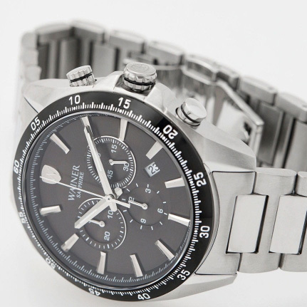 Корпус: Круглый корпус из нержавеющей стали 316L. Циферблат чёрного цвета, защищен устойчивым к царапинам сапфировым стеклом и украшен фирменным логотипом Wainer в положении 12 часов. Метки в виде рисок. Люминесцентные стрелки. Рифленая заводная головка с защитой. Диаметр корпуса 45 мм. Водонепроницаемость 100 метров.