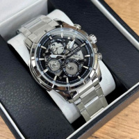 Корпус: Стильные мужские часы со скелетонизированным циферблатом. Корпус изготовлен из латуни и имеет надёжное износостойкое покрытие серебристого цвета. Циферблат черного цвета. Часовые индексы и стрелки с люминесцентным покрытием. Прочное минеральное стекло обеспечит защиту часов от повреждений. Диаметр: 44 мм. Водонепроницаемость: 50 м.