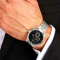 Функции: Центральные часовая, минутная и секундная стрелки. Хронограф, 12/24 отображение времени.