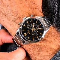 Функции: Индикация часов и минут при помощи центральных стрелок. 12-ти и 24-х часовой формат времени. Хронограф. Окошко даты находится в положении между 4 и 5 часов.