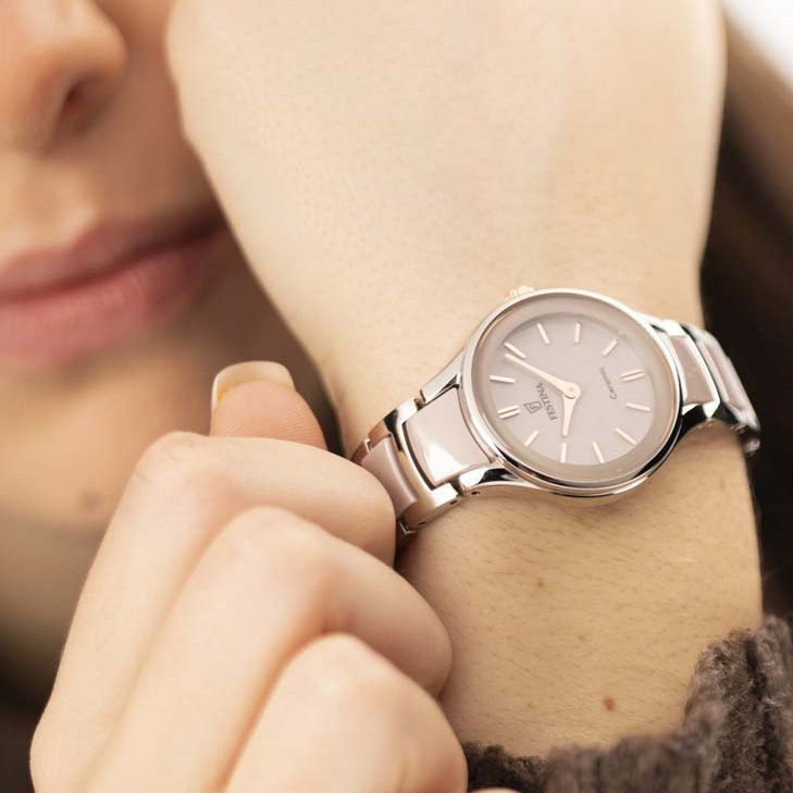 Ремешок: Стальной браслет с керамическими вставками розового цвета. Раскладывающаяся застежка.