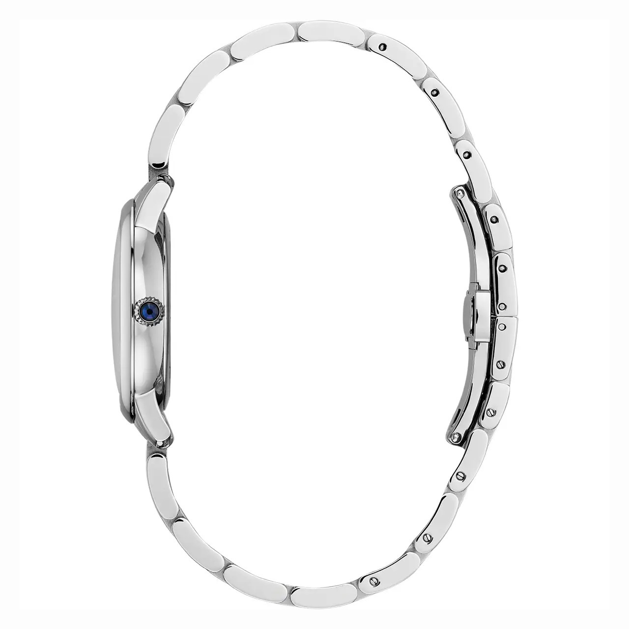 Корпус: Круглый корпус из высококачественной стали, практически не поддающейся коррозии, поверхности с финишной полировкой. На белом перламутровом циферблате вручную установлены 10 бриллиантовых маркеров, и стрелки -”листок” с напылением родия, отполированные вручную. Сапфировое стекло имеет повышенную устойчивость к возникновению царапин. Переводная коронка украшена кабошоном. Задняя крышка захлопывается под давлением. Диаметр корпуса модели составляет: 30 мм, толщина - 7,65 мм. Водостойкость: 30 метров (3 АТМ).