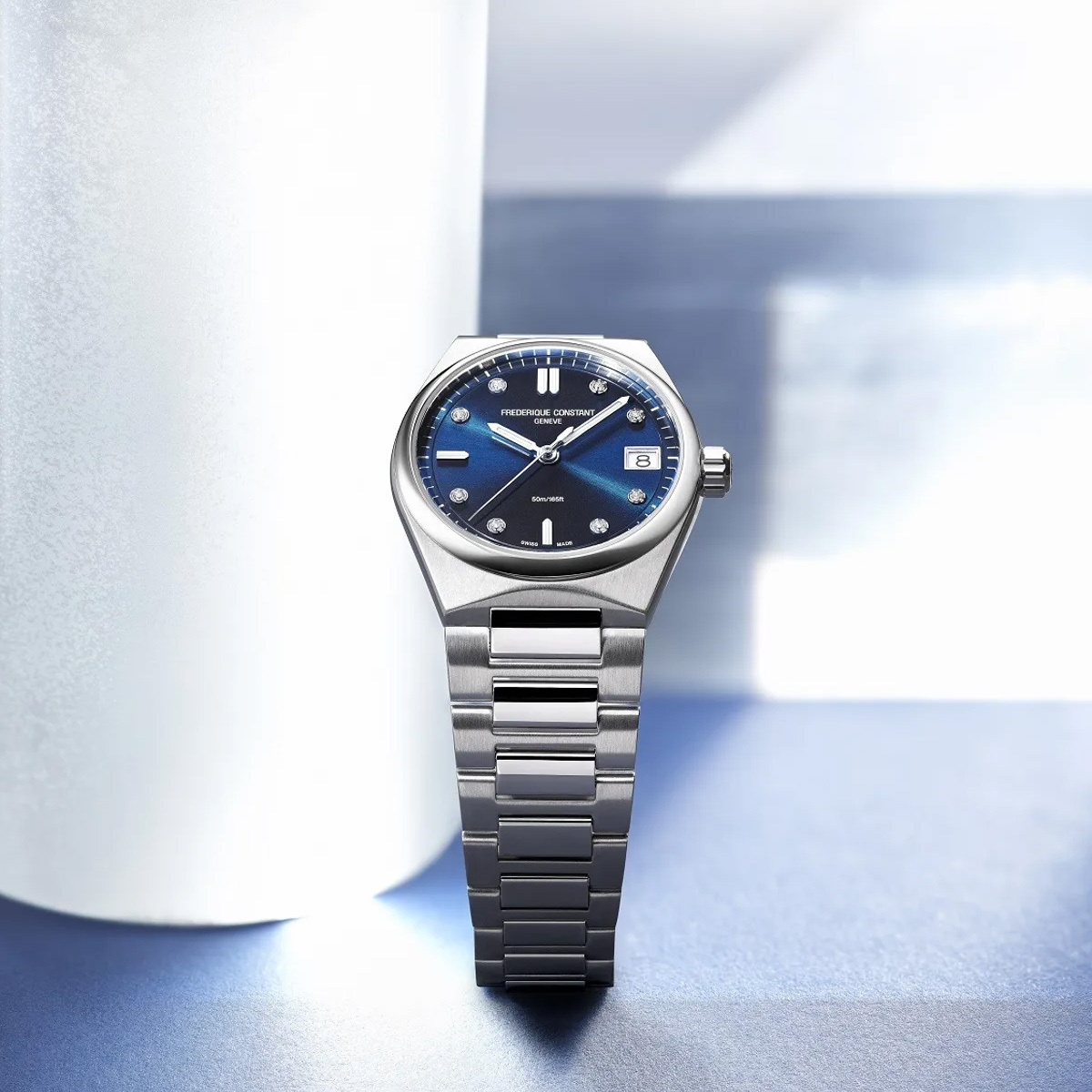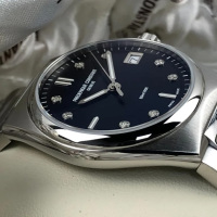 Корпус: Корпус круглой формы выполнен из нержавеющей стали марки 316L. Циферблат синего цвета украшен бриллиантами. Стрелки и метки с люминесцентным покрытием. Сапфировое стекло имеет повышенную устойчивость к возникновению царапин. Диаметр 31 мм. Водостойкость 50 метров.