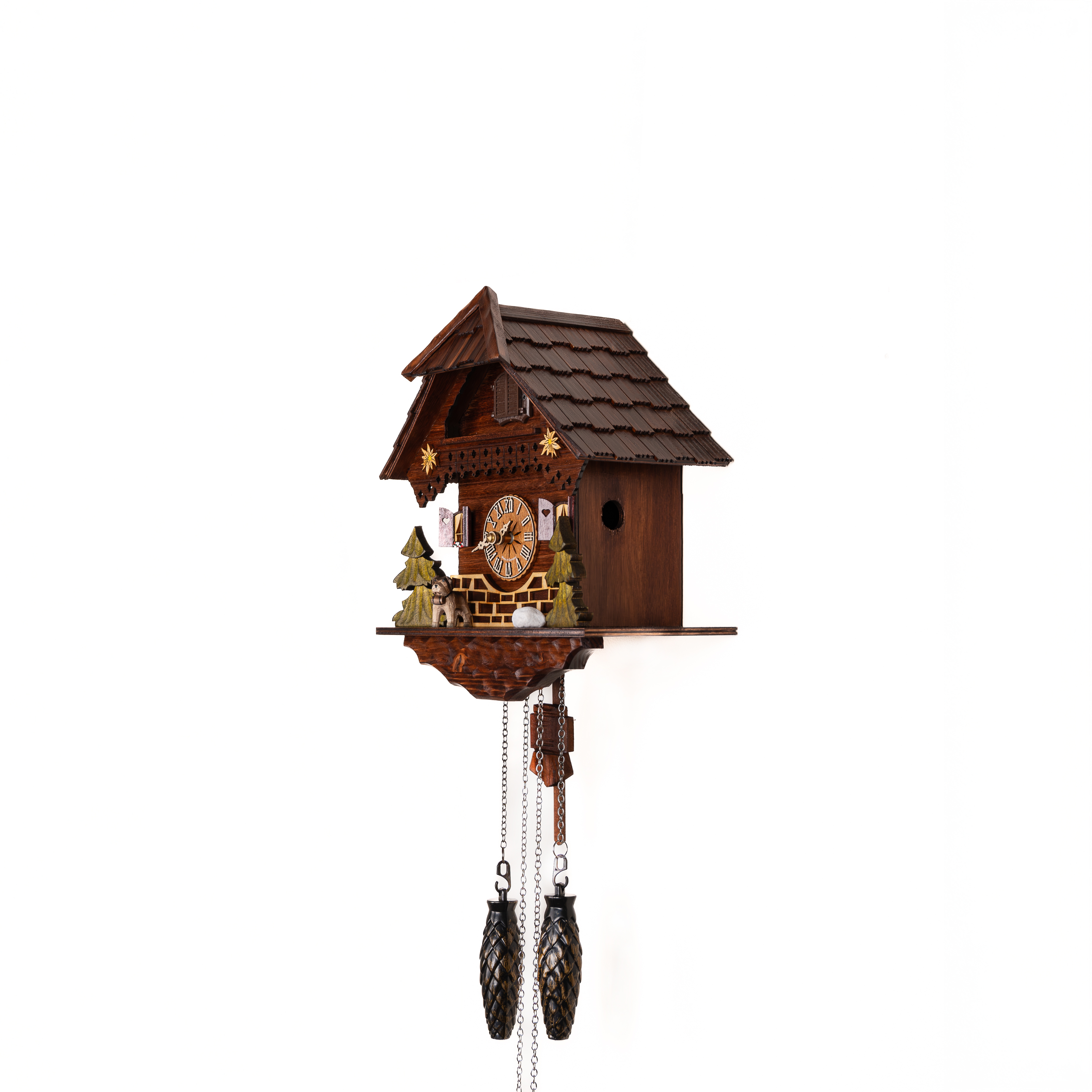 Механизм: Кварцевый. Декоративные маятник и гири. Кукушка кукует каждый полный час.