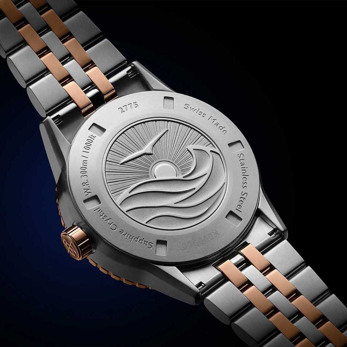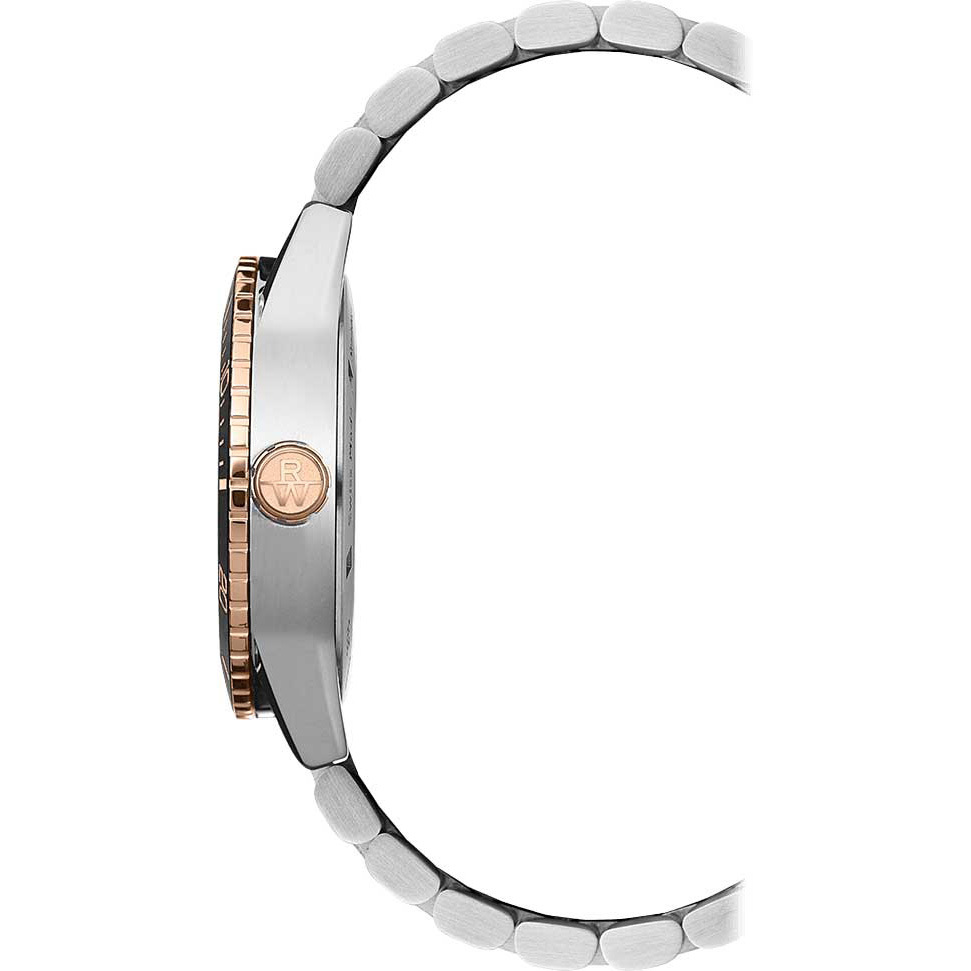 Корпус: Корпус изготовлен из полированной нержавеющей стали. Керамический безель вращается в одном направлении. Градиентный циферблат чёрного цвета с накладными метками в виде штрихов. Метки и стрелки с люминесцентным покрытием SuperLuminova, которое светится в темноте после непродолжительной зарядки на свету. Сапфировое стекло с двусторонним антибликовым покрытием. Завинчивающаяся задняя крышка с гравировкой водного пейзажа, олицетворяющего свободу, ощущаемую на воде, а также независимый дух. Завинчивающаяся заводная головка с монограммой RW. Диаметр: 42,5мм, толщина 11,7мм. Водозащита: 300WR.
