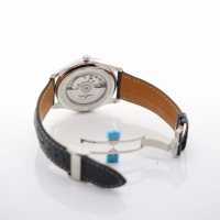 Корпус: Нержавеющая сталь. Циферблат синего цвета, серебристые стрелки и риски. Сапфировое стекло с антибликовым покрытием. Водонепроницаемость 30 метров. Размер 40 мм.