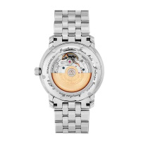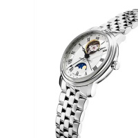 Функции: Индикация часов, минут и секунд при помощи центральных стрелок. Стрелочный указатель даты в центре. Лунный календарь. Открытый баланс хода.