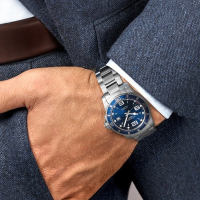 Корпус: Корпус из нержавеющей стали. Синий циферблат. Сапфировое стекло с антибликовым покрытием. Завинчивающиеся задняя крышка и заводная головка. Однонаправленно вращающийся безель из анодированного алюминия. Диаметр 41 мм. Водозащита 300 м.