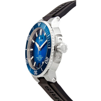 Корпус: Многокомпонентный корпус из нержавеющей стали. Керамический безель с минутной шкалой вращается в одном направлении. Циферблат выполнен по технологии Sunray (солнечные лучи) синего цвета. Сапфировое стекло, выпуклое с обеих сторон, внутреннее антибликовое покрытие. Индексы и стрелки покрыты составом Superluminova BG W9. Завинчивающаяся задняя крышка со специальной гравировкой. Завинчивающаяся заводная головка из нержавеющей стали. Диаметр: 43,5 мм. Водонепроницаемость: 300 метров.