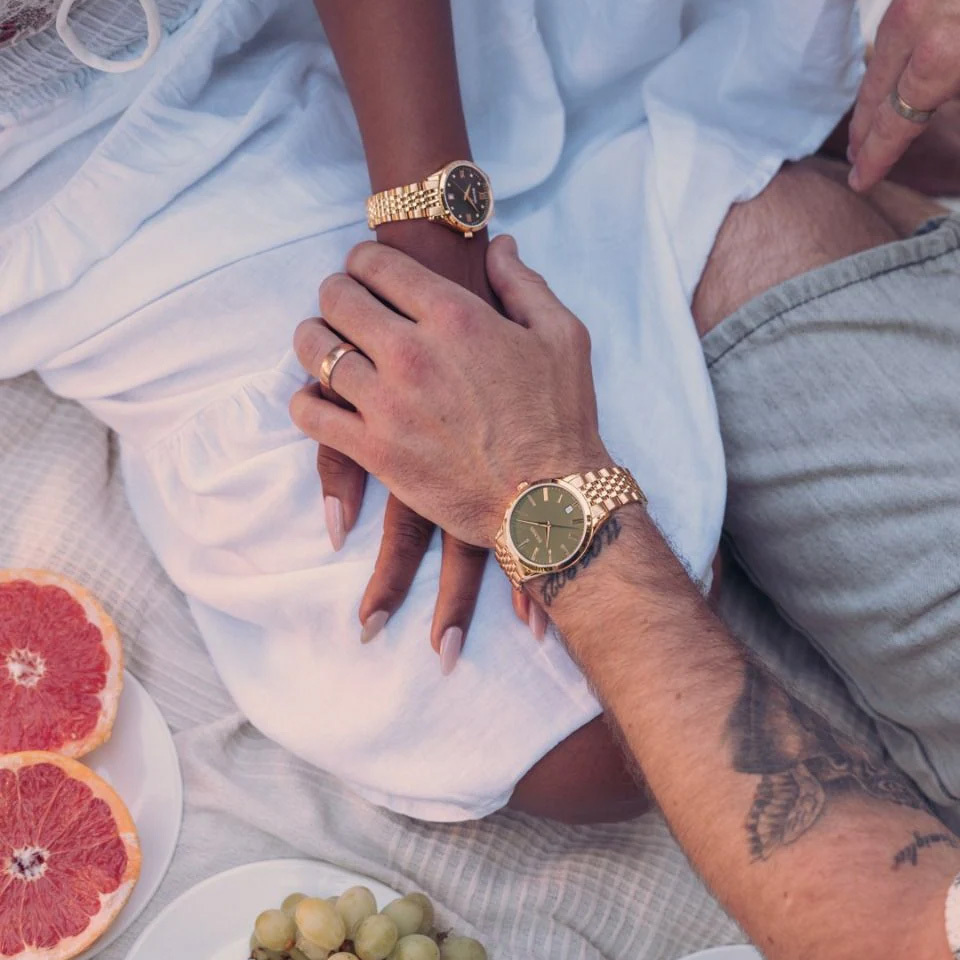 Корпус: Корпус из нержавеющей стали и PVD-покрытие золотом жёлтого цвета. Циферблат зелёного цвета украшен 8 бриллиантами. Часовые индексы и стрелки выполнены из стали с позолотой. Сапфировое стекло, устойчивое к появлению царапин, обладающее высокой прозрачностью. Диаметр: 34 мм. Водостойкость: 50 м.