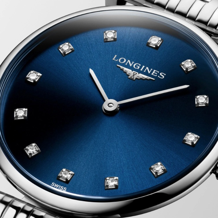 Корпус: Нержавеющая сталь, сапфировое стекло, 12 бриллиантов на циферблате. Размер 24 мм, водонепроницаемость 30 метров. Циферблат – синий.