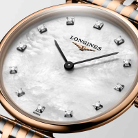 Корпус: Нержавеющая сталь + PVD-покрытие из розового золота, сапфировое стекло, 12 бриллиантов на циферблате. Размер 29 мм, водонепроницаемость 30 метров. Циферблат – перламутровый белый.