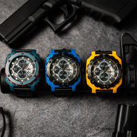 Корпус: Яркий прямоугольный корпус, выполненный из нержавеющей стали AISI 304, придающей часам особую прочность и стойкость от повреждений c покрытием IP(ионное). Часовые индексы и стрелки с покрытием SuperLuminova, которое обеспечивает подсветку в темное время суток. Циферблат многослойный, словно 3D, основа покрыта металлизированной пудрой, для придания эффекта шершавости. Упрочненное минеральное стекло Hardlex(разработанным компанией Seiko Watch Corporation, которое обладает высокой устойчивостью к ударам и царапинам, около 7 баллов по шкале Мооса). Диаметр: 50 мм. Водонепроницаемость: 50 м.