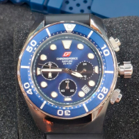 Корпус: Корпус выполнен из нержавеющей стали AISI 304, что придает часам особую прочность и стойкость от повреждений. Циферблат синий, который дополняет однонаправленный вращающийся безель. Контрастные метки и стрелки покрыты люминесцентным покрытием для лучшей видимости в темноте. Закаленное минеральное стекло Hardlex разработанное компанией Seiko Watch Corporation, которое обладает высокой устойчивостью к ударам и царапинам. Диаметр 45 мм. Водозащита 20 бар (200 метров).