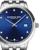 Ремешок: Модель на браслете с 5 рядами литых звеньев из высококачественной стали. Браслетная застежка, раскладывающаяся при нажатии на кнопки с двойной системой блокировки, украшена гравировкой Raymond Weil.