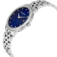 Корпус: Корпус круглой формы выполнен из нержавеющей стали марки 316L. Циферблат глубокого синего цвета с шлифовкой "солнечные лучи" украшен в качестве часовых индексов инкрустацией 11 бриллиантов 8/8 - SI2 - SI1, общим весом 0,04 карата, граненые стрелки имеют покрытие цвета родия. Сапфировое стекло имеет повышенную устойчивость к возникновению царапин. Переводная коронка украшена логотипом RW. Задняя крышка крепится к корпусу при помощи пресса. Диаметр: 34 мм. Водостойкость 50 метров (165 ft / 5 АТМ).