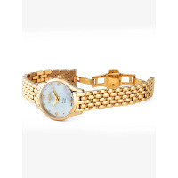 Корпус: Корпус выполнен из высококачественной нержавеющей стали 316L c IP-покрытием цвета жёлтого золота. Перламутровый циферблат белого цвета декорирован бриллиантами, серебристые стрелки и часовые индексы. Сапфировое стекло с антибликовым покрытием. Диаметр: 30 мм. Водозащита: 30 м.