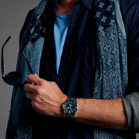 Ремешок: Массивный стальной браслет с тройной застежкой надежно фиксирует часы на запястье и подчеркивает спортивный характер модели.