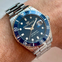 Корпус: Корпус выполнен из высококачественной стали с повышенной устойчивостью к коррозии, поверхности с матовой шлифовкой – сатинированием и полировкой до зеркального блеска. Однонаправленный керамический безель вращается со щелчками в направлении против хода стрелок. Циферблат синего цвета. Люминесцентный состав на стрелках и на разметке циферблата. Сапфировое стекло, это лучшее стекло для наручных часов, которое не царапается при механическом воздействии, его можно повредить только алмазом. Диаметр корпуса: 42 мм. Водозащита до 300 метров позволит плавать, нырять и погружаться под воду с аквалангом.