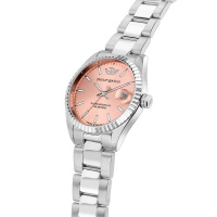 Корпус: Корпус выполнен из высококачественной стали с повышенной устойчивостью к коррозии, поверхности с матовой шлифовкой – сатинированием и полировкой до зеркального блеска. Циферблат розового цвета с шлифовкой “солнечные лучи". Люминесцентный состав на стрелках и на разметке циферблата. Сапфировое стекло, это лучшее стекло для наручных часов, которое не царапается при механическом воздействии, его можно повредить только алмазом. Диаметр корпуса: 35 мм. Водозащита до 100 метров позволит плавать.