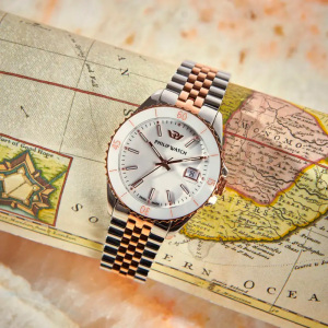 Ремешок: Браслет выполнен из высококачественной стали с повышенной устойчивостью к коррозии, с частичным PVD покрытием и раскладывающейся застежкой на фиксации.