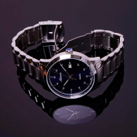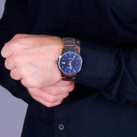 Корпус: Круглый корпус выполнен из полированной нержавеющей стали. Синий циферблат выполнен по технологии Sunray (солнечные лучи). Накладные часовые индексы выполненый из стали. Стрелки с покрытием SuperLuminova, которое обеспечивает подсветку в темное время суток. Минеральное стекло. Диаметр корпуса составляет 43 мм, толщина 11 мм. Водостойкость WR 50 (мытье рук, дождь).
