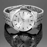 Корпус: Круглый корпус выполнен из полированной нержавеющей стали. Серебристый циферблат. Накладные часовые индексы и стрелки выполнены из стали с покрытием SuperLuminova, которое обеспечивает подсветку в темное время суток. Минеральное стекло. Диаметр корпуса составляет 42 мм, толщина 8 мм. Водостойкость WR 50 (мытье рук, дождь).