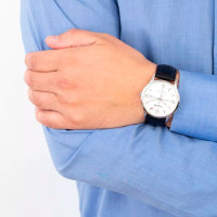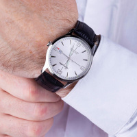 Корпус: Круглый корпус выполнен из полированной нержавеющей стали. Светлый циферблат. Накладные часовые индексы выполнены из стали. Стрелки с покрытием SuperLuminova, которое обеспечивает подсветку в темное время суток. Минеральное стекло. Диаметр корпуса составляет 42 мм, толщина 10 мм. Водостойкость WR 50 (мытье рук, дождь).