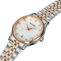 Корпус: Корпус из нержавеющей стали c частичным PVD - покрытием розового золота, поверхность с полировкой до зеркального блеска. Белый перламутровый циферблат украшен 11 бриллиантами Top Wesselton VS-SI общим весом 0,041 карата. Часовые индексы и стрелки выполнены из стали с позолотой. Сапфировое стекло, устойчивое к появлению царапин, обладающее высокой прозрачностью. Диаметр корпуса составляет 32 мм. Водонепроницаемость: 30 м.