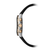 Корпус: Корпус круглой формы выполнен из нержавеющей стали марки 316L. Безель, переводная коронка и кнопки хронографа с золотым PVD покрытием. Безель с разметкой тахиметрической шкалы. Черный циферблат с шлифовкой и рельефной поверхностью. Часовые индексы, выполненные методом аппликации, и стрелки с золотым покрытием. Люминесцентное покрытие Super-Luminova на стрелках и часовых индексах. Сапфировое стекло имеет повышенную устойчивость к возникновению царапин. Диаметр корпуса модели Tango 8570-R51-20001 составляет 43 мм, толщина - 11.9 мм. Водостойкость 300 метров (1000 ft / 30 АТМ).