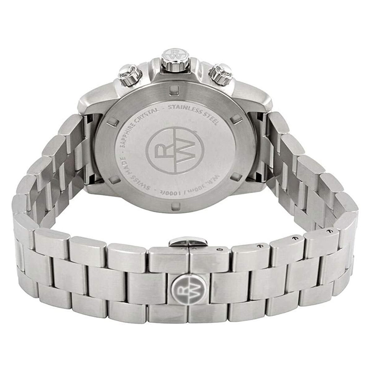 Корпус: Корпус круглой формы выполнен из нержавеющей стали марки 316L. Безель с разметкой тахиметрической шкалы. Поверхность черного циферблата с матовой обработкой. Дополнительные индикаторы хронографа утоплены относительно плоскости основного циферблата. Часовые индексы, выполненные методом аппликации, и стрелки с серебристым покрытием. Люминесцентное покрытие Super-Luminova на стрелках и часовых индексах. Сапфировое стекло имеет повышенную устойчивость к возникновению царапин. Переводная коронка украшена логотипом RW. Задняя крышка имеет резьбовое крепление к корпусу. Диаметр корпуса модели составляет 43 мм, толщина - 11.9 мм. Водостойкость 300 метров (1000 ft / 30 АТМ).
