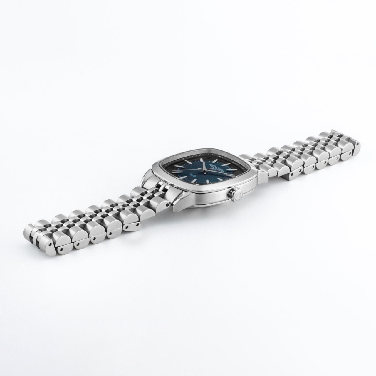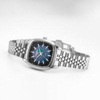 Корпус: Корпус изготовлен из высококачественной нержавеющей стали, марки 316L. Черный перламутровый/матовый циферблат. Накладные часовые индексы и стрелки выполнены из полированной стали с люминесцентным покрытием Super-Luminova, которое светится в темноте после непродолжительной зарядки на свету. Сапфировое стекло с антибликовым покрытием защищает циферблат от царапин и обеспечивает отличную читаемость при любом освещении. Рифлёная заводная головка. Размер корпуса: 32 x 32 мм. Водонепроницаемость: 50 метров.
