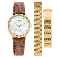 Ремешок: Браслет из нержавеющей стали с IP покрытием. В комплект каждых часов входит дополнительный кожаный ремешок, который вы можете заменить с помощью удобной кнопки, без необходимости использования инструмента. Часы поставляются в специальной подарочной упаковке.